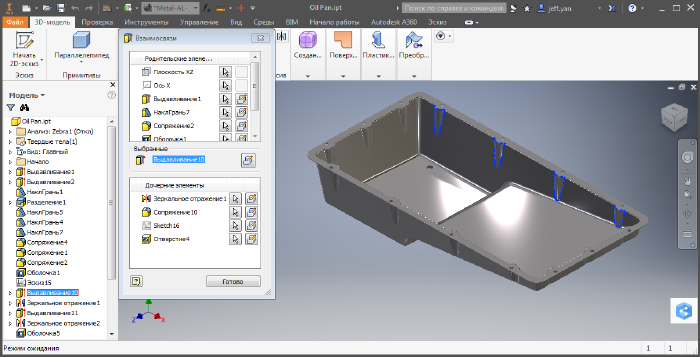 Новый инструмент связей между элементами позволяет выявлять связи между родительскими и дочерними элементами детали. Это позволяет быстро проанализировать параметры, определяющие модель, а результаты анализа можно использовать для внедрения или автоматизации изменений в геометрии.