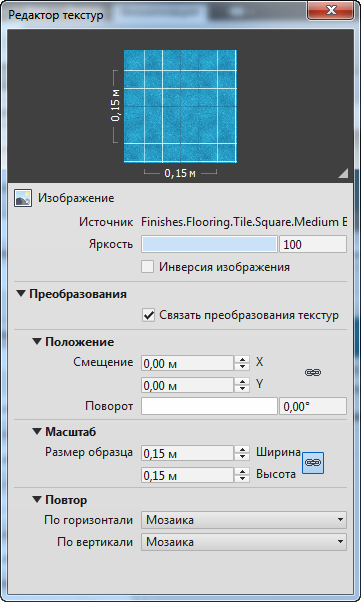 Чтобы применить изменения свойств положения, масштаба и повторения, внесенных в текущую текстуру, для других текстур того же материала, установите флажок Привязать преобразования текстур.