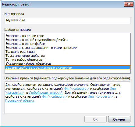 - В поле "Описание правила" щелкните на каждом из подчеркнутых значений для определения пользовательского правила. Встроенные шаблоны допускают адаптацию следующих величин: