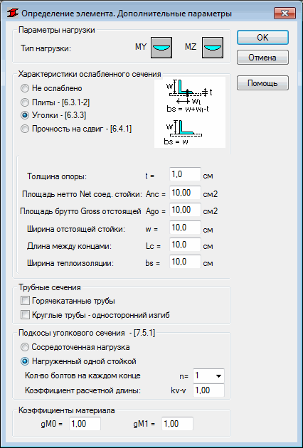 Если выбирают опцию Трубы – односторонний изгиб, то Robot рассчитывает для этого типа сечения изгибающий момент, который является суммой моментов, действующих вдоль осей Y и Z;