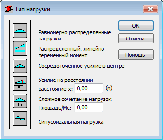 При автоматическом расчете, когда с изменением варианта нагрузки изменяется ее тип, принимается тип по умолчанию ("стержень с двумя моментами на концах"). Когда вариант нагрузки или значения внутренних сил выбираются вручную, можно определить тип нагрузки более точно.