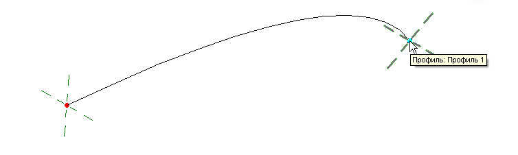 Выделяется конечная точка профиля 1 на траектории перехода по траектории.