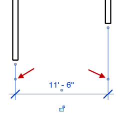 Прим.: Щелкните левой кнопкой мыши элемент управления вспомогательной линией для изменения опорной точки данного элемента. Например, щелчок левой кнопкой мыши элемента управления стены вызывает переключение опорной точки между осевой линией, внутренней гранью и наружной гранью стены.