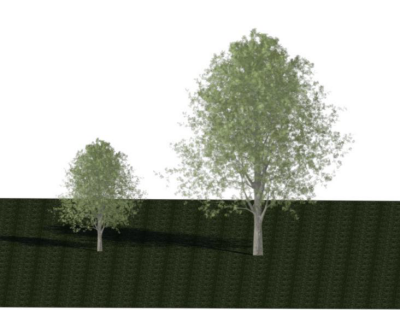 Изменить размер объектов озеленения можно с помощью свойств типа в проекте. Обновленный размер элементов озеленения отображается на 2D- и 3D-видах и в визуализированных изображениях.