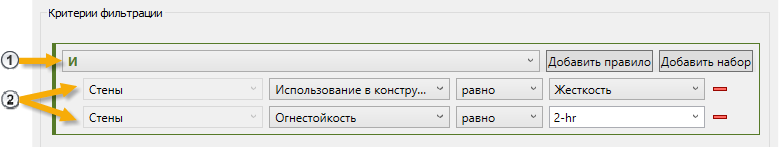 Например, чтобы создать фильтр, позволяющий определить двери с 2-часовой огнестойкостью, выберите категорию «Двери». Чтобы создать фильтр для определения дверей и стен с 2-часовой огнестойкостью, необходимо выбрать категории «Двери» и «Стены».