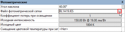 - Для параметра "Файл фотометрической сетки" щелкните в столбце "Значение".