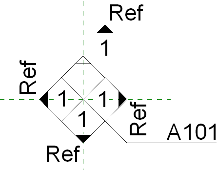 - Повторите шаги 2 - 4, откройте файл «Марка фасада, указатель.rft», задайте для параметра «Использование марок отметок» значение «Указатель», нарисуйте указатель и сохраните семейство в файле с именем <указатель>.rfa.