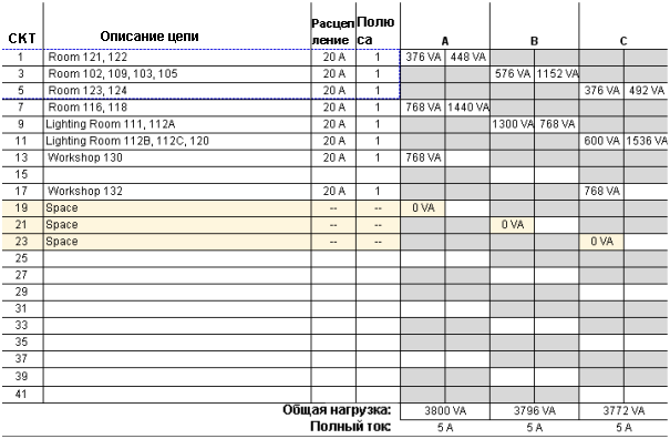 Балансировка нагрузок на принципиальной схеме щита/панели