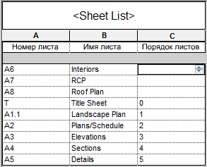 При вводе порядковых номеров листов Revit выполняет сортировку ведомости.