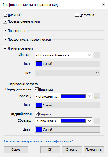 Переопределения видимости/графикиПереопределение основных слоевСтили линий в сечении