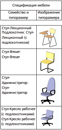 Изображения мебели отображаются в видовом экране спецификации, размещенном на листе.
