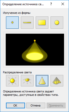 Откроется диалоговое окно «Определение источника света».