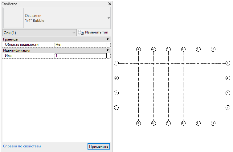 Сетка AutoCAD Architecture создается в плоскости самого нижнего уровня модели Revit, которая располагается не ниже нижней точки контура модели на виде. Многовидовые блоки для марок осей сетки прикрепляются якорями к концам линий сетки и создаются в той же плоскости.