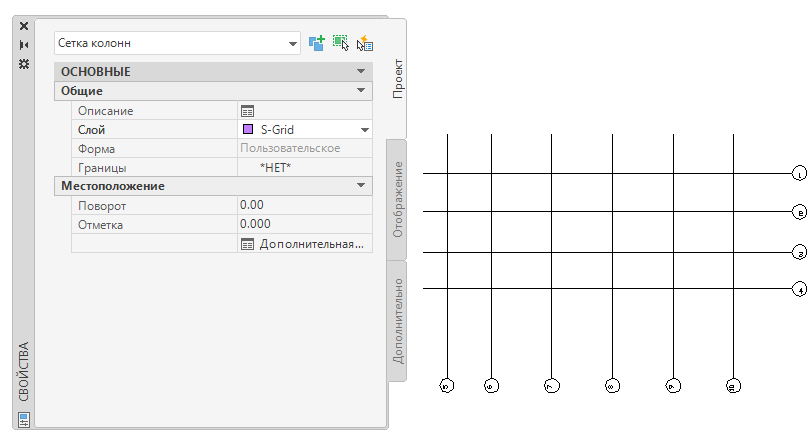 | марки осей сетки | многовидовые блоки, прикрепленные якорями к пользовательской сетке |