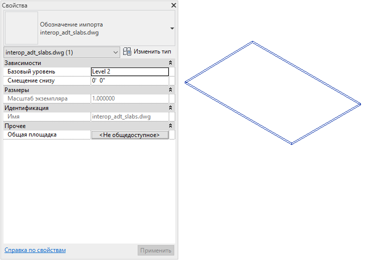 Импортированное перекрытие дополнительно приобретает следующие свойства: