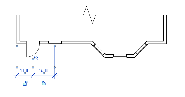 При размещении постоянных линейных или угловых размеров рядом с ними отображается элемент управления фиксацией. Он отображается при выборе