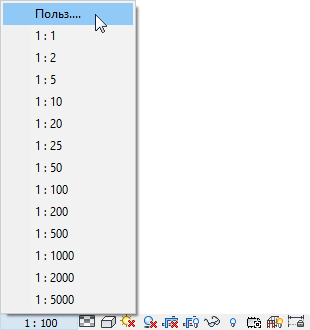 1. На панели управления видом щелкните на масштабе вида и выберите "Пользовательские".