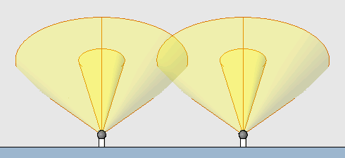 Совет: Для равномерного освещения поверхности расположите осветительные приборы так, чтобы углы лучей слегка перекрывались.