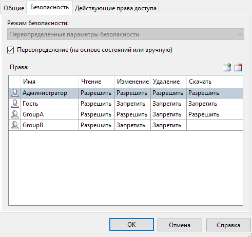 , можно просмотреть предоставленный им тип доступа к объекту в выбранном режиме типа безопасности. Чтобы просмотреть, каким образом будут затронуты разрешения, измените тип безопасности.