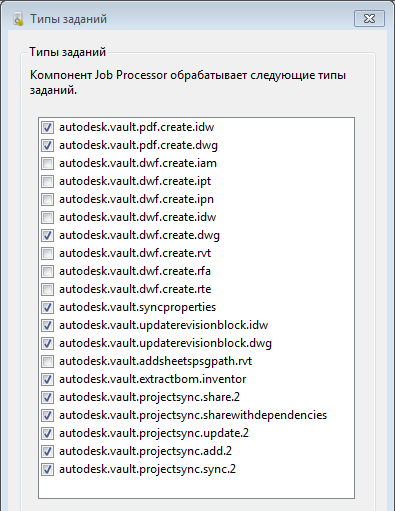 Типы заданий, которые могут обрабатываться на рабочей станции, обозначены флажком в диалоговом окне "Типы заданий".