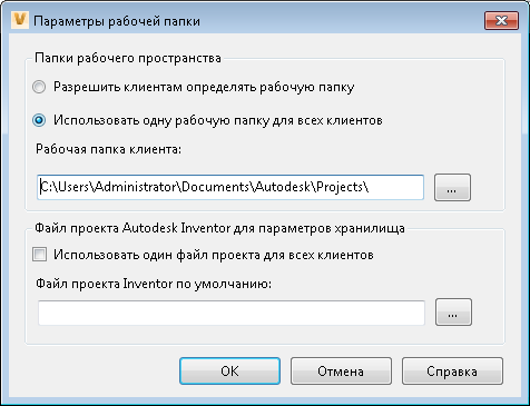 Файл проекта Autodesk Inventor по умолчанию в Vault может быть указан администратором.