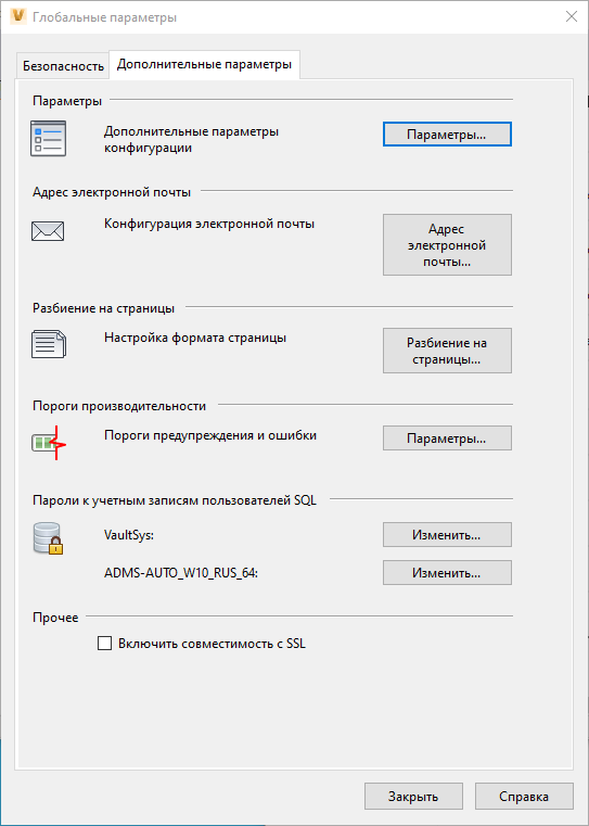 Если сервер SMTP использует протокол SSL, можно активировать совместимость с Vault Server. |