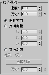 变化在选择“方向向量”或“参考对象”选项时,对方向应用一个变化百分比。如果选择“随机方向”,此微调器不可用并且无效。