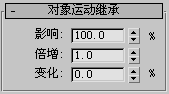 在粒子产生时,继承基于对象的发射器的运动的粒子所占的百分比。例如,如果将此选项设置为 100(默认设置),则所有粒子均与移动的对象一同移动;如果设置为 0,则所有粒子都不会受对象平移的影响,也不会继承对象的移动。