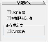 “连接部层次”卷展栏提供的控件可用于锁定连接部、修补脊椎弹出和重定位。
