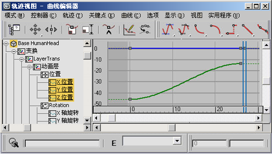 在 CATParent 上的选定层下,您将在曲线编辑器的“变换”分支下找到变换 Gizmo 的动画关键点。您也可以使用范围视图功能快速访问这些关键点。