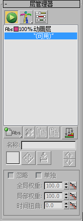 此新层处于选中状态,且权重为 100%,这表示您可以立即开始调整您的动画。