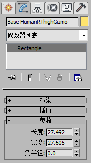 可编辑 Gizmo 设置,使其符合您的角色的蒙皮网格的大小和图形。要执行此操作,请选择 Gizmo,然后转到“修改”面板。这些设置与 3ds Max 中等效样条线对象的设置相同;请参见主要帮助以了解详细信息。