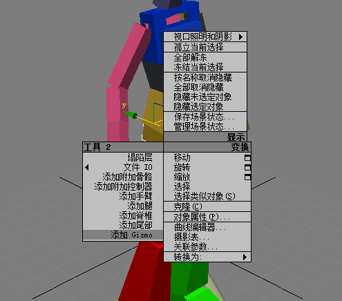 当 CATRig 处于设置模式且右键单击任何 CATBone 时,“工具 2”四元菜单将包含“添加 Gizmo”命令。