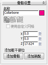 用于在其他骨骼中复制和粘贴锁骨设置的按钮。请参见