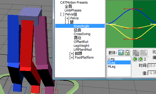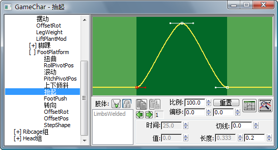 除 OffsetRot 和 OffsetPos 之外的所有控制器均有图形,用于显示所选控制器在运动循环内的运动曲线。
