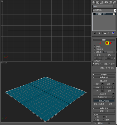 在下图中,可编辑多边形的隐藏边已使用“编辑三角剖分”工具旋转。Plane01 对象上的隐藏边显示为从左到右穿过对象的虚线。然后将此场景导出为 FBX。