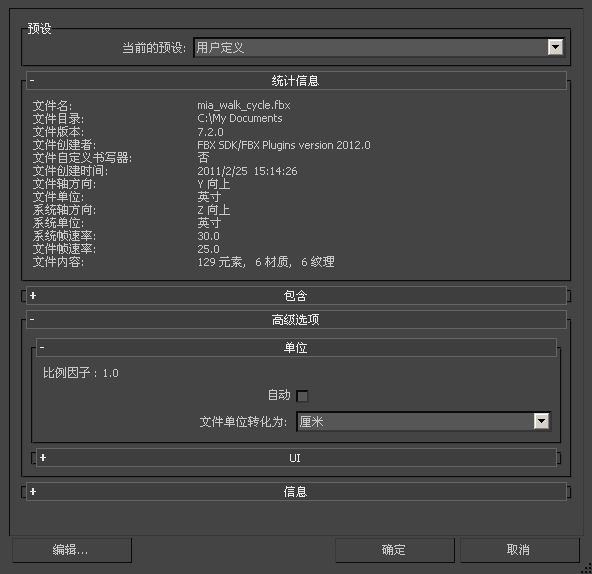 3ds Max FBX plug-in将包含 FBX 预设的日志文件存储在 C:\My Documents\3dsmax\FBX\Logs 中。