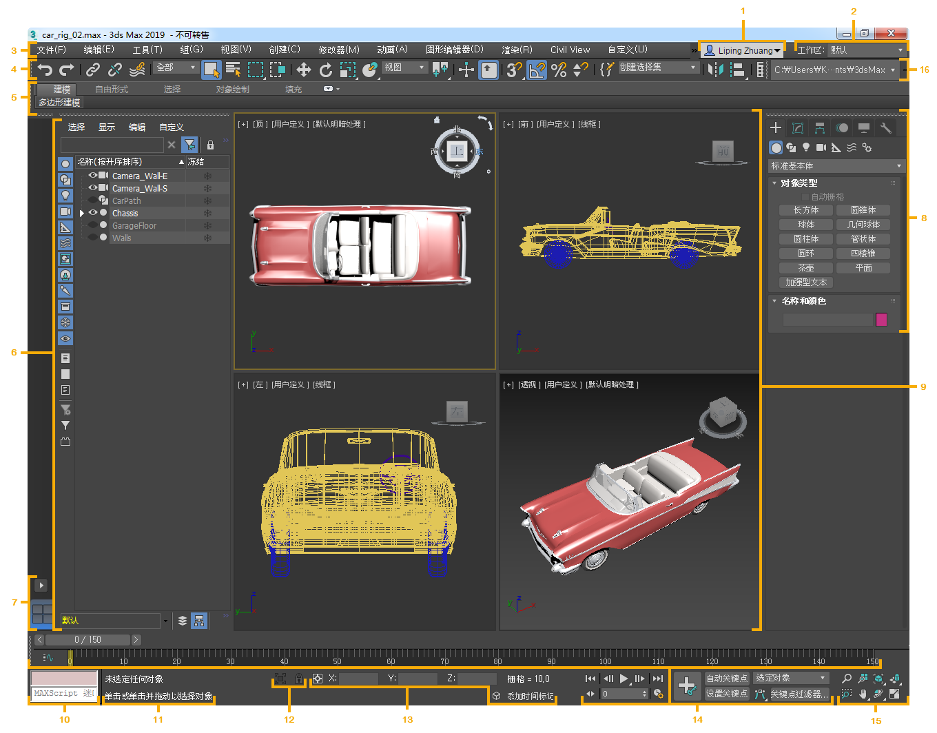 3ds Max 界面由控件、状态信息和视口组成,从中可以使用和查看场景。