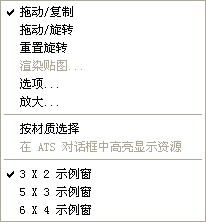 - 将拖动示例窗设置为复制模式。启用此选项后,拖动示例窗时,材质会从一个示例窗复制到另一个,或者从示例窗复制到场景中的对象,或复制到材质按钮。