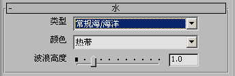当“类型”选项为“通用溪流/江河”、“通用池塘/湖泊”或“通用海/洋”时,可以在此下拉列表中选择水的颜色。