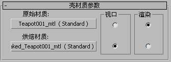显示烘焙材质的名称。单击按钮可查看该材质,并调整其设置。