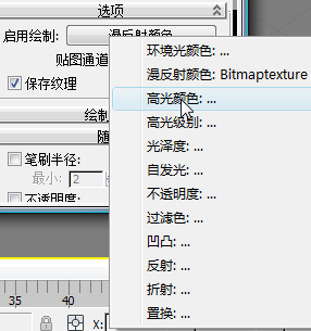 选择要在其上进行绘制的对象材质中的贴图类型。单击按钮以打开可用贴图类型的列表: