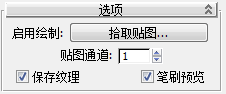 启用此选项后,退出活动的绘制工具时将更新当前位图纹理文件。禁用此选项后,将自动丢弃任何更改。进行尝试性操作时,请禁用此开关,这样便不会保存绘制。