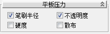 使用绘图板(亦称手写板)绘制时,可以通过更改绘制时绘图板上的笔压力来改变以下设置。