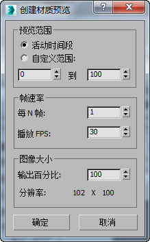当单击“生成预览”以预览动画材质时,显示“创建材质预览”对话框。默认情况下,该预览以名称 _medit.avi 保存在 \previews 子目录中。您可以使用“保存预览”为预览指定不同的名称,这样在下次使用“生成预览”时就不会将其覆盖。