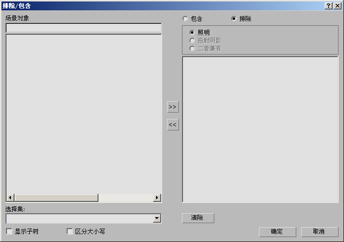 选择光线跟踪是否包含或排除右边列表中命名的对象。