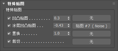 每个设置都有一个用于启用/禁用贴图的复选框,以及用于定义贴图的按钮。