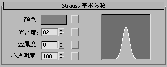 控制材质的颜色。这与为其他种类明暗器指定的漫反射颜色相对应。使用 Strauss 明暗器,可以只控制这种颜色。该明暗器计算环境光和高光颜色组件。