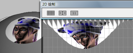 直接应用于顶部附近球体曲面的图像(左侧)在“2D 绘制”窗口中发生扭曲。