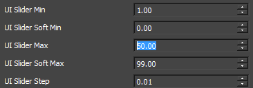 添加“浮点”节点并打开“显示为材质输入”使值在材质编辑器中显示时,该范围默认情况下为 0.0 至 99.0。